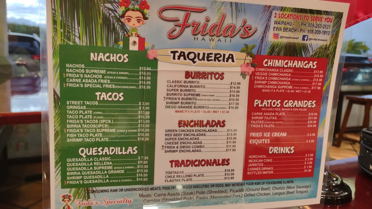 Welcome to Frida's Hawaii, the hidden gem in Ewa Beach where authentic Mexican flavors meet warm Hawaiian hospitality. Located at 91-1001 Kaimalie St #105, this inviting spot has garnered an impressive following thanks to its commitment to quality and authenticity.